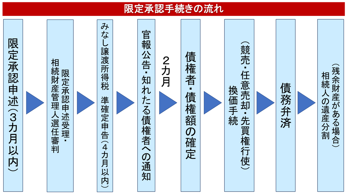 これについては、限定承認の手続きの流れを見ていただくとよりわかりやすくなります。