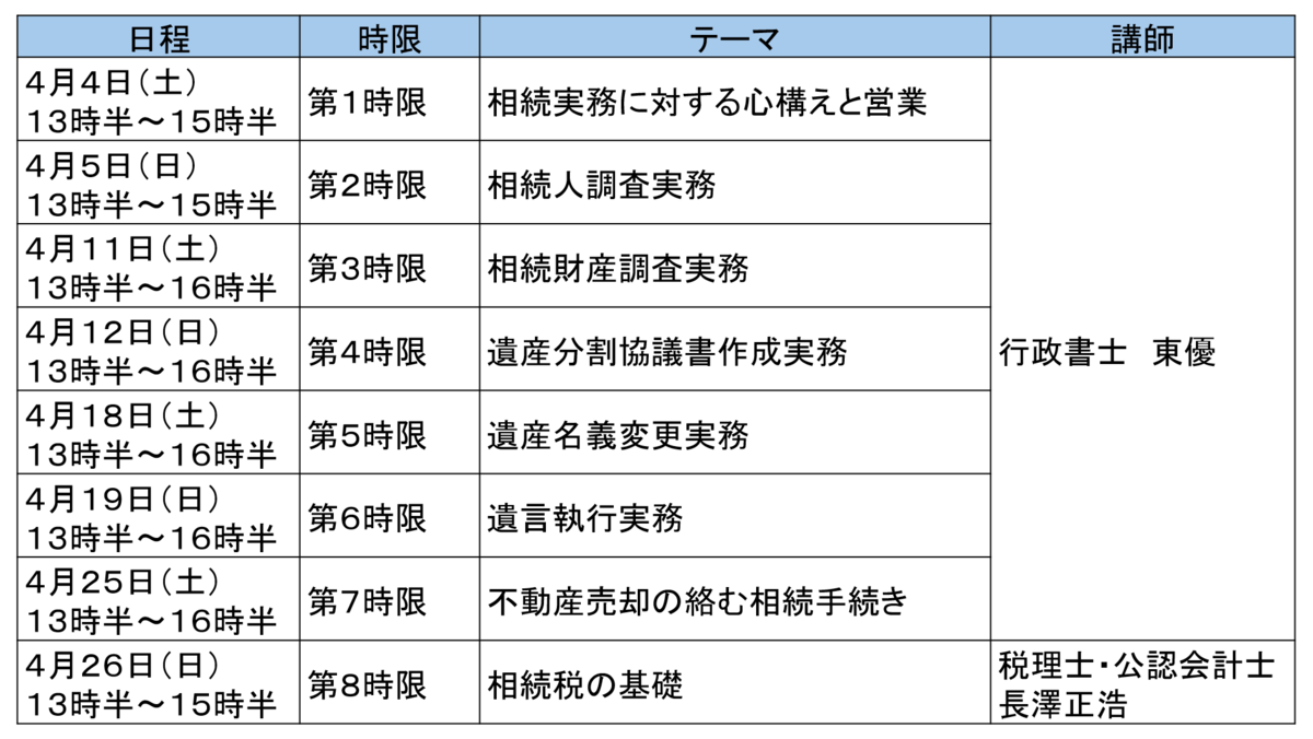 行政書士のための相続実務研修講座 オンラインライブ講座